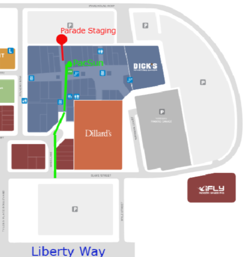Drop Off/Meet Up at PACSUN in Liberty Center (See Map Below): Between 4:30-4:50 for parade staging